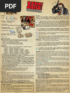 Explaining the dice results. BANG_dice_game-rulespdf - Free download as PDF File pdf Text File txt or read online for free. Games with one die games with two dice - tactic TACTIC rules for dice games.